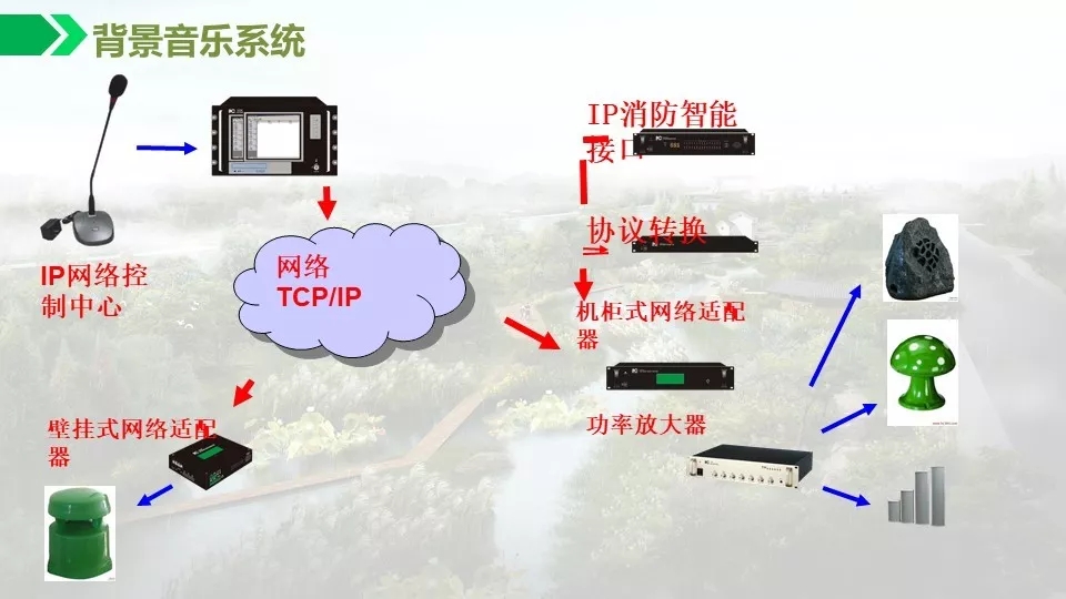 背景音乐采用IP功放,突破了传统模拟广播系统的内容局限、空间局限和功能局限,可以灵活的扩展和延伸。