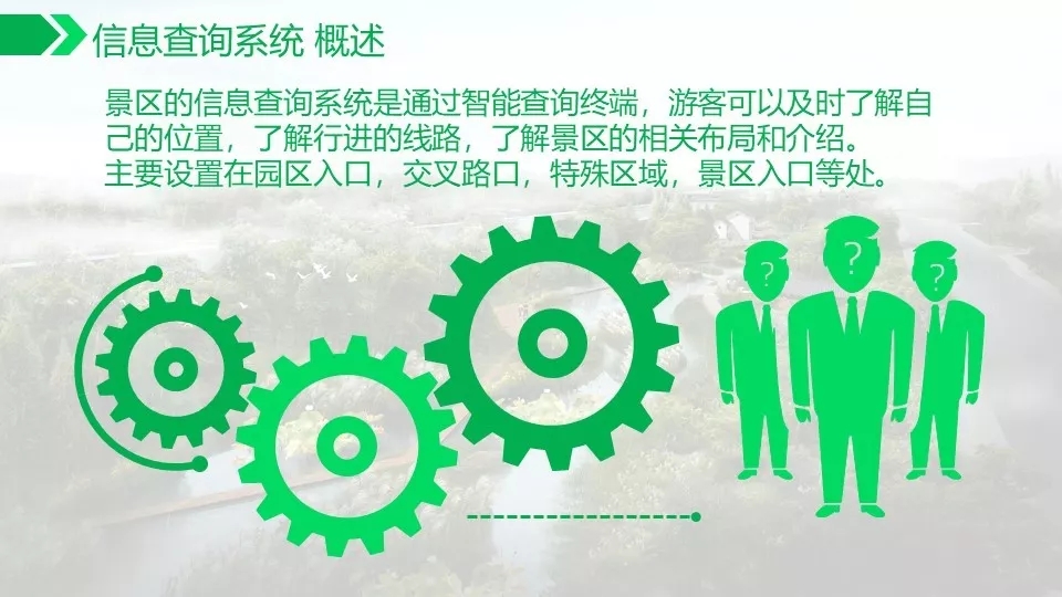背景音乐按照功能分区,实现不同功能区播放不同的音乐内容以适合该区域的情景需求。现场适当位置设置信息查询系统,方便游客对公园信息及感兴趣的内容进行查询,方便游客的路线规划和提高舒适度。通过设置一键求助可以方便游客同公园管理中心联系,及时处理问题或紧急情况。