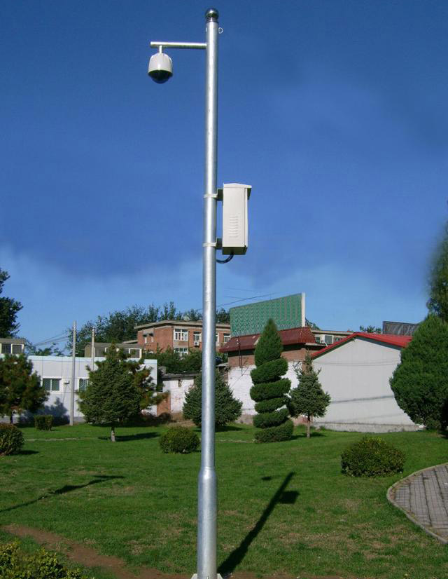 枪机和半球并不难,这里主要讲一讲球机的安装方法,安装球机一般都是安装在立杆上,如上图,在图上这种环境需要在地上挖一个坑把地笼埋下去,然后用水泥凝固留下一个头出来,够拧螺丝就行了,这是第一步准备工作。